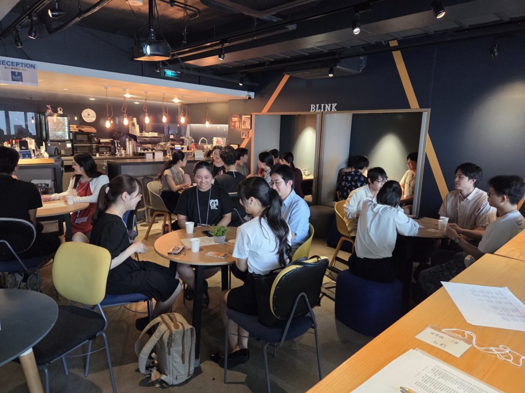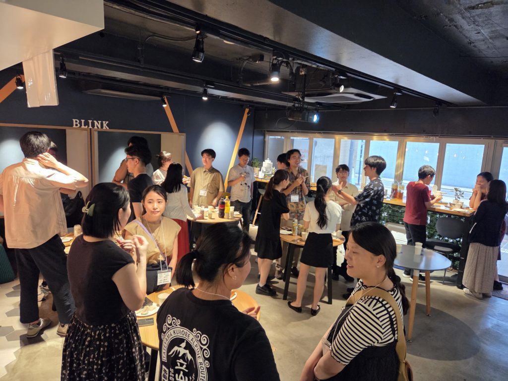 今年度は昨年度(2024年)に引き続き、オフライン交流会を7月13日、オンライン交流会を7月27日に分けて開催しました。オフライン交流会の会場は2024年度と同じく、Blink Communityが運営されているBLINK 六本木様に会場を提供していただき、オンライン交流会はZoomで開催しました。オフライン交流会では24名、オンライン交流会では12名の方に参加いただきました。